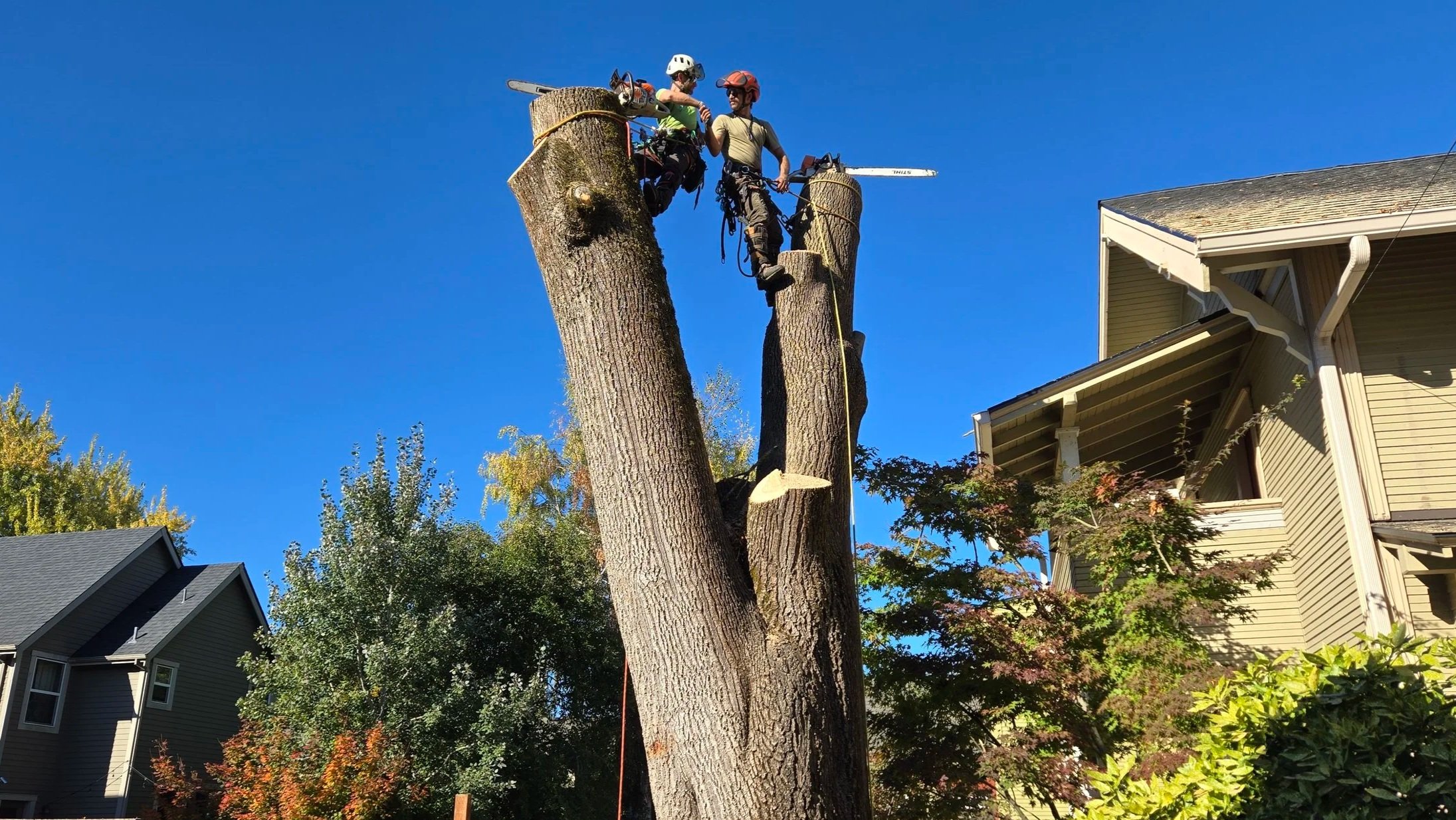 *Our chipper can process most debris up to roughly 5” in diameter. Our standard service includes chipping on site, leaving mulch dispersed in planting beds, at the base of trees, or in a pile to be dispersed by you at your discretion. We typically leave all wood larger than 5” in diameter on site in “firewood” lengths. All debris can be disposed of off site for additional fees as requested.